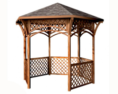 Беседка из дерева небольшое архитектурное строение необходимое на территории любого загородного участка. Современные деревянные беседки поражают своей изящностью и формами. Основная ее функция служить местом отдыха и украшением общей концепции ландшафтного дизайна, которая всегда будет радовать глаз природной теплотой. Кровля беседки может быть из доски, черепицы или пластика. Беседки бывают открытого типа и закрытого.